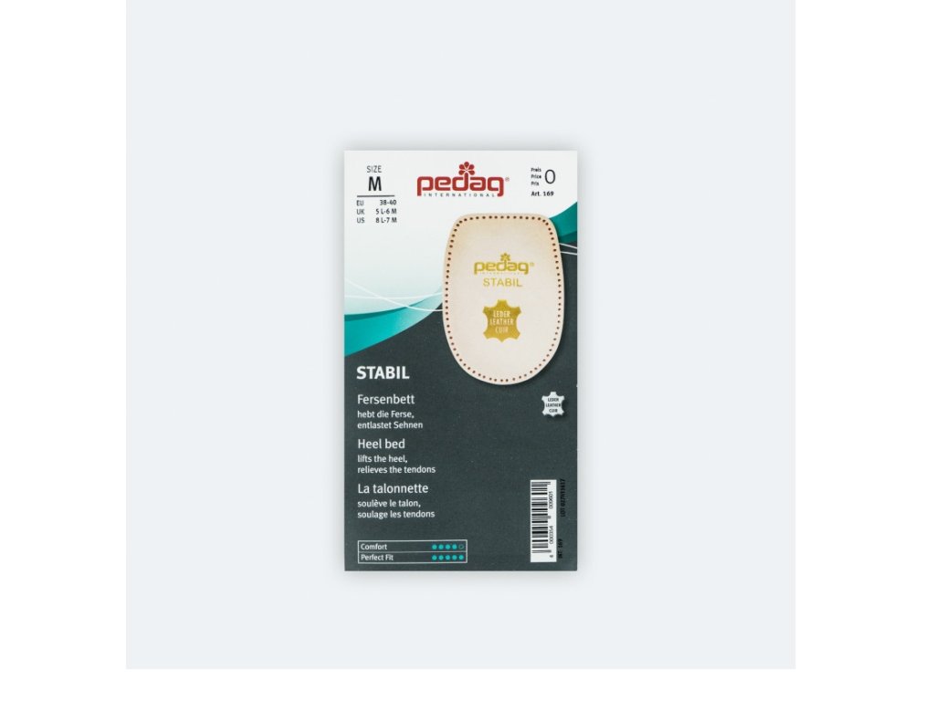 Anatomický tvar a pevný materiál jemně nadzvedá patu, čímž okamžitě zmírňuje bolest Achillovy šlachy. Zároveň dorovnává odlišnou délku končetin. Povrch tvoří velmi jemná hovězí useň.